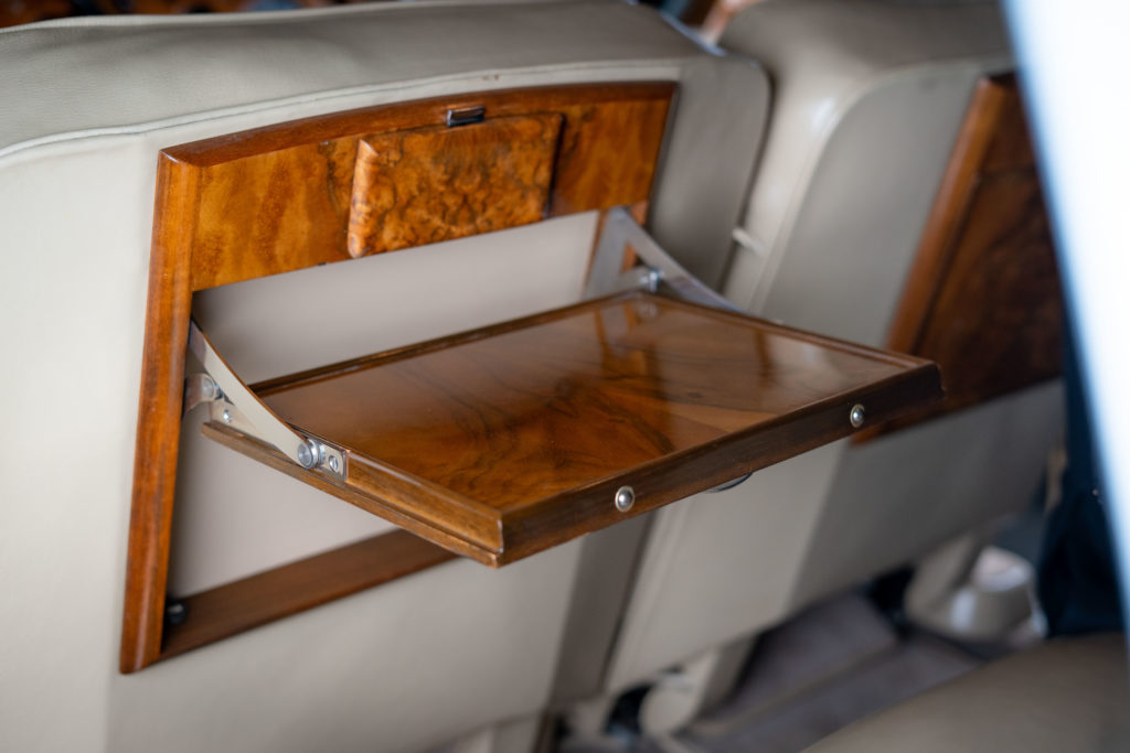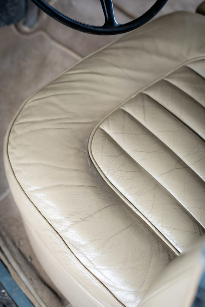 Sa sellerie en cuir, ses moquettes et ses boiseries d’origine sont en excellent état.