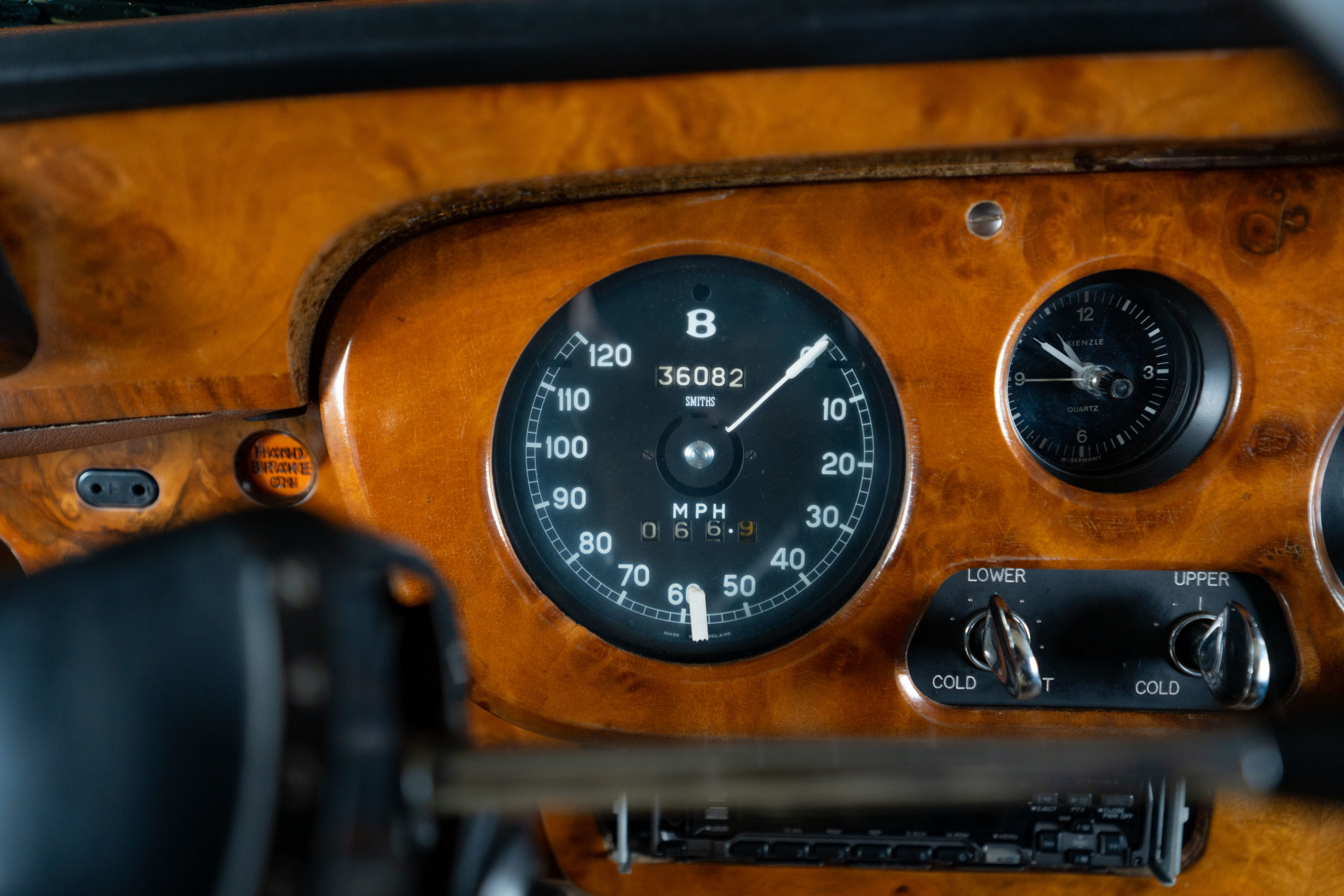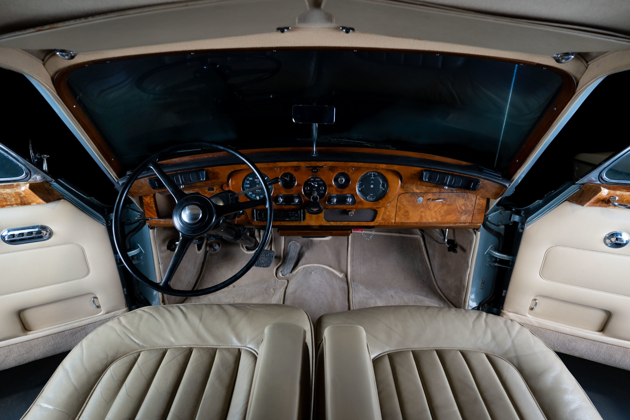 Sa sellerie en cuir, ses moquettes et ses boiseries d’origine sont en excellent état.