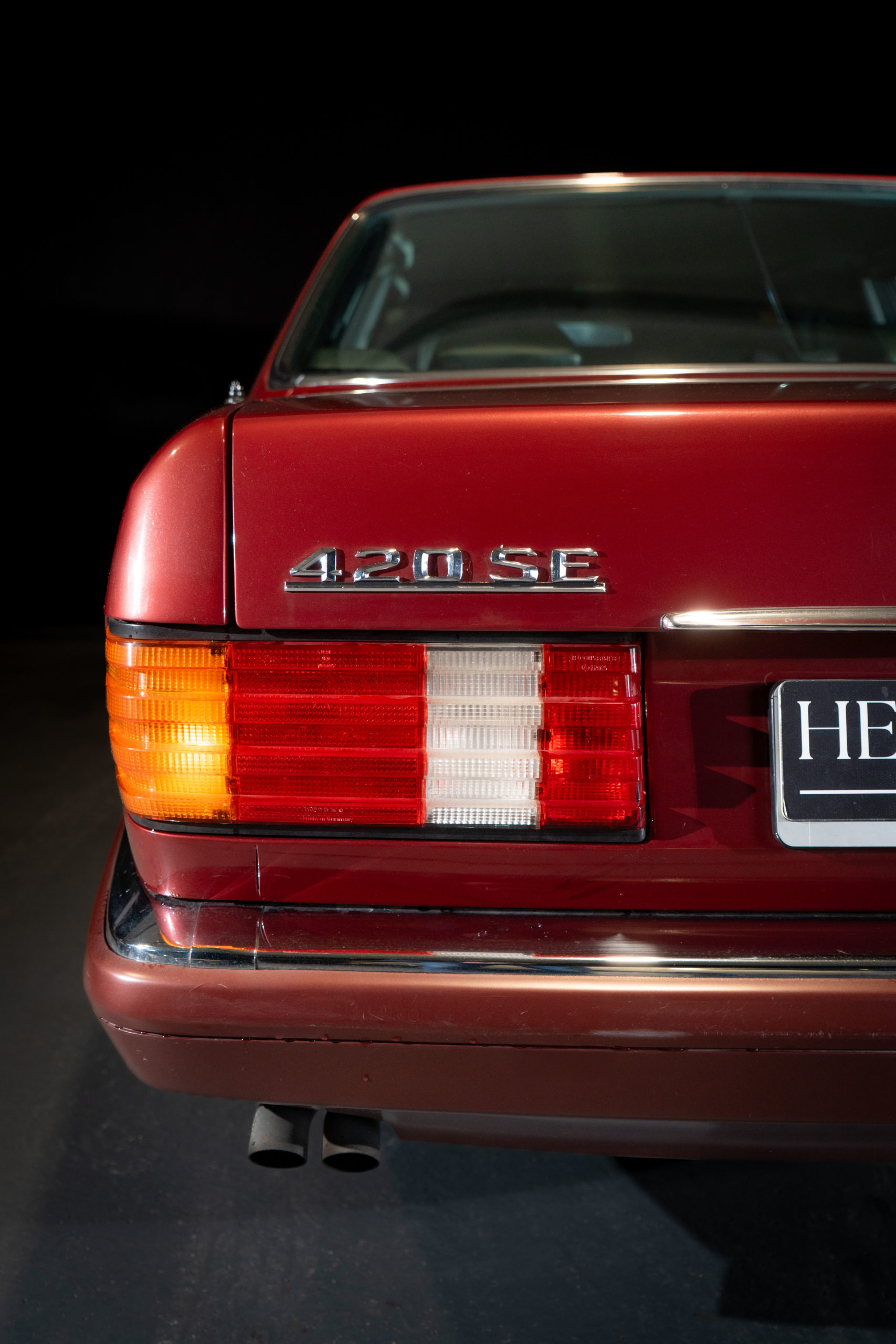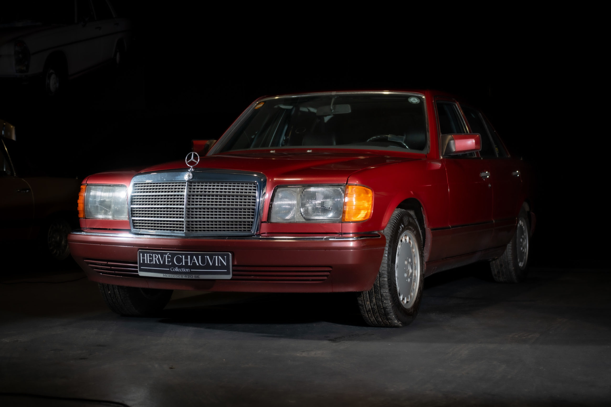 Cette splendide Mercedes 420 SE est une perle rare. Rare car peu de 420 SE, plus homogènes et pratiques que les SEL, ont été produites. Rare par son état et son kilométrage. Rare par sa couleur rouge almandin qui lui sied à merveille, soulignant l’élégance de ses lignes. Rare par ses nombreuses options. Parmi elles, le toit ouvrant électrique, la climatisation, les jantes en aluminium, la radio d’origine avec son antenne automatique, les sièges électriques et chauffants à l’avant et chauffants également à l’arrière, le rideau arrière électrique et une superbe sellerie en cuir noir parfaitement assortie à la ronce de noyer dans un état quasi neuf. Tous ces équipements optionnels sont mentionnés sur la facture d’achat disponible dans le dossier.