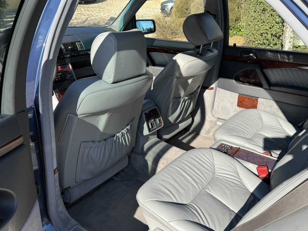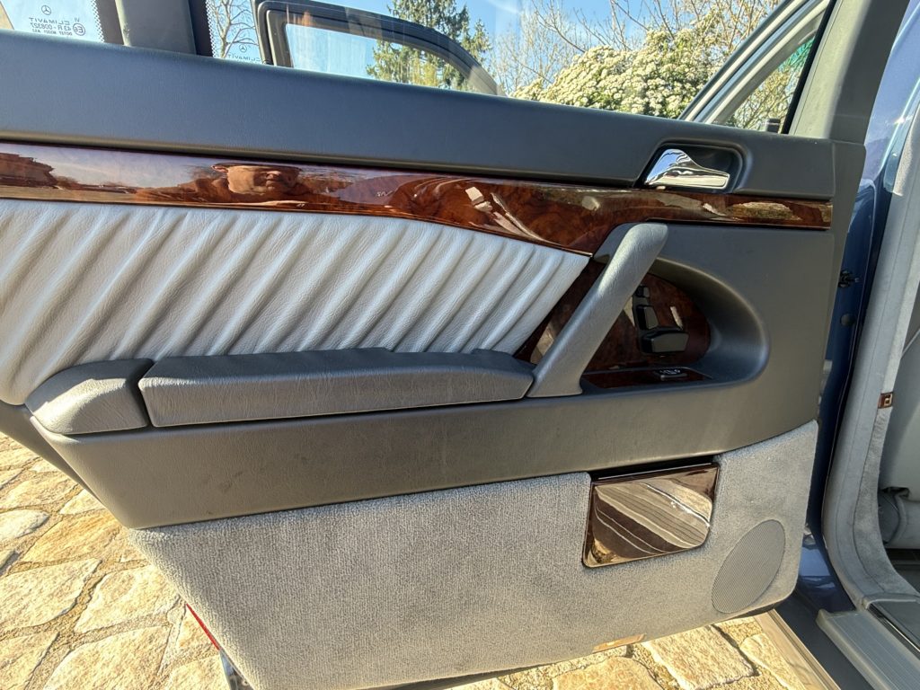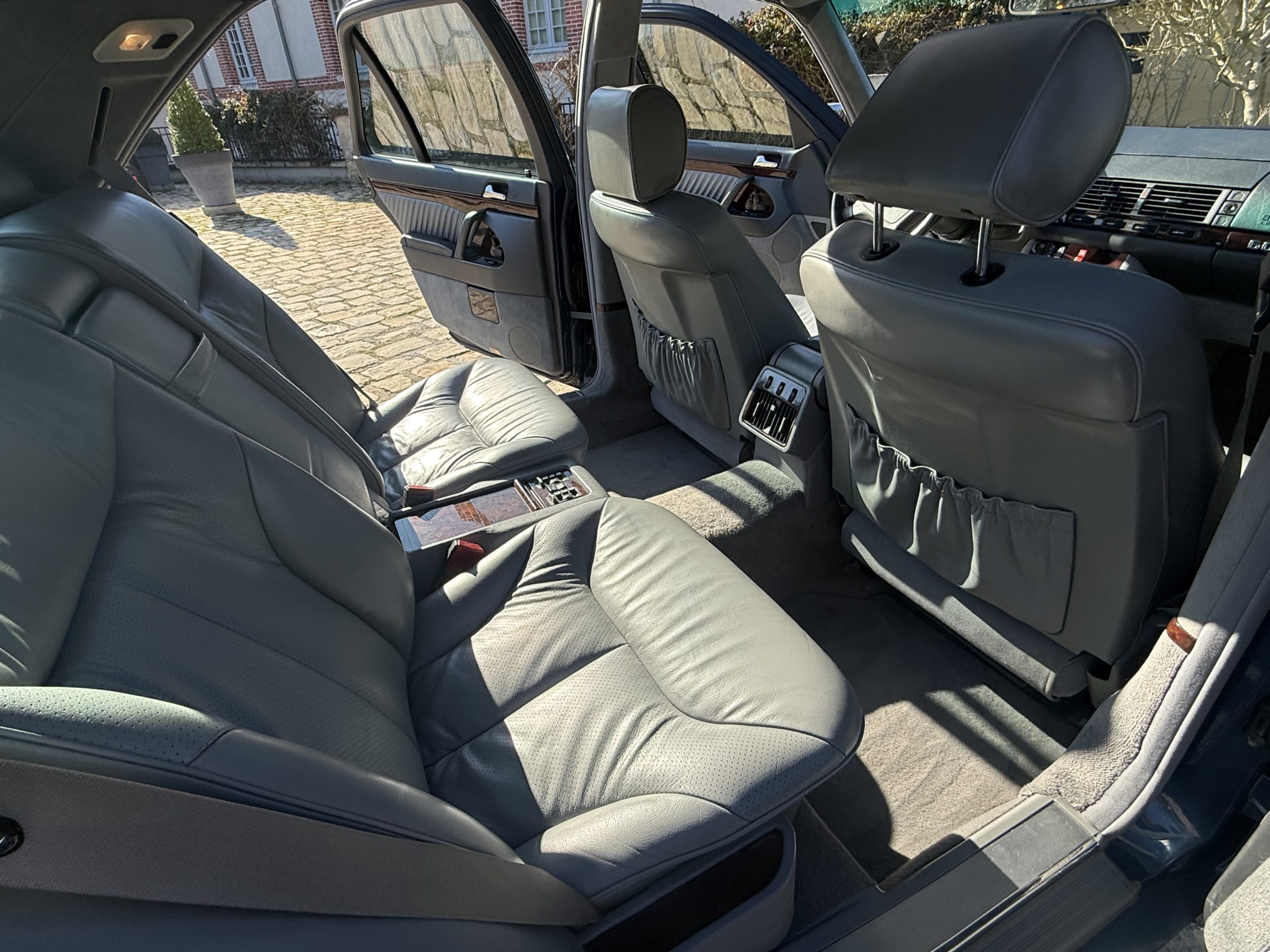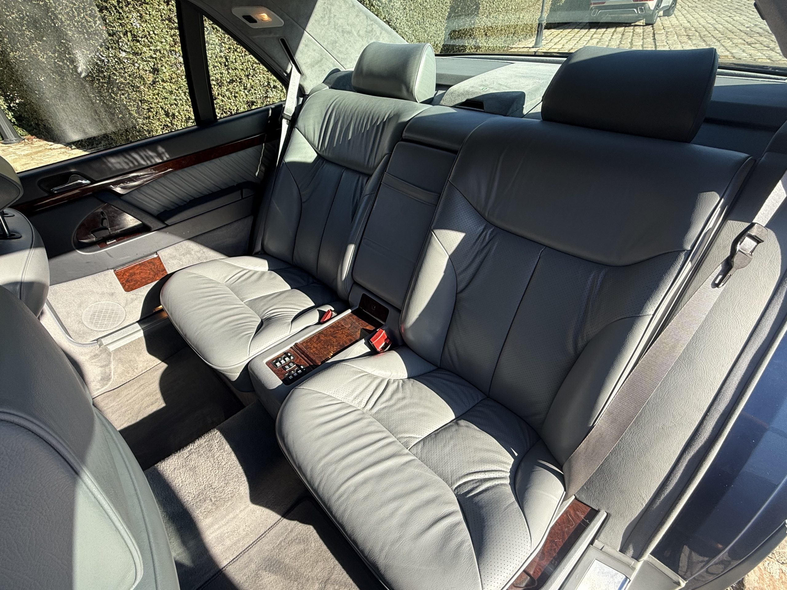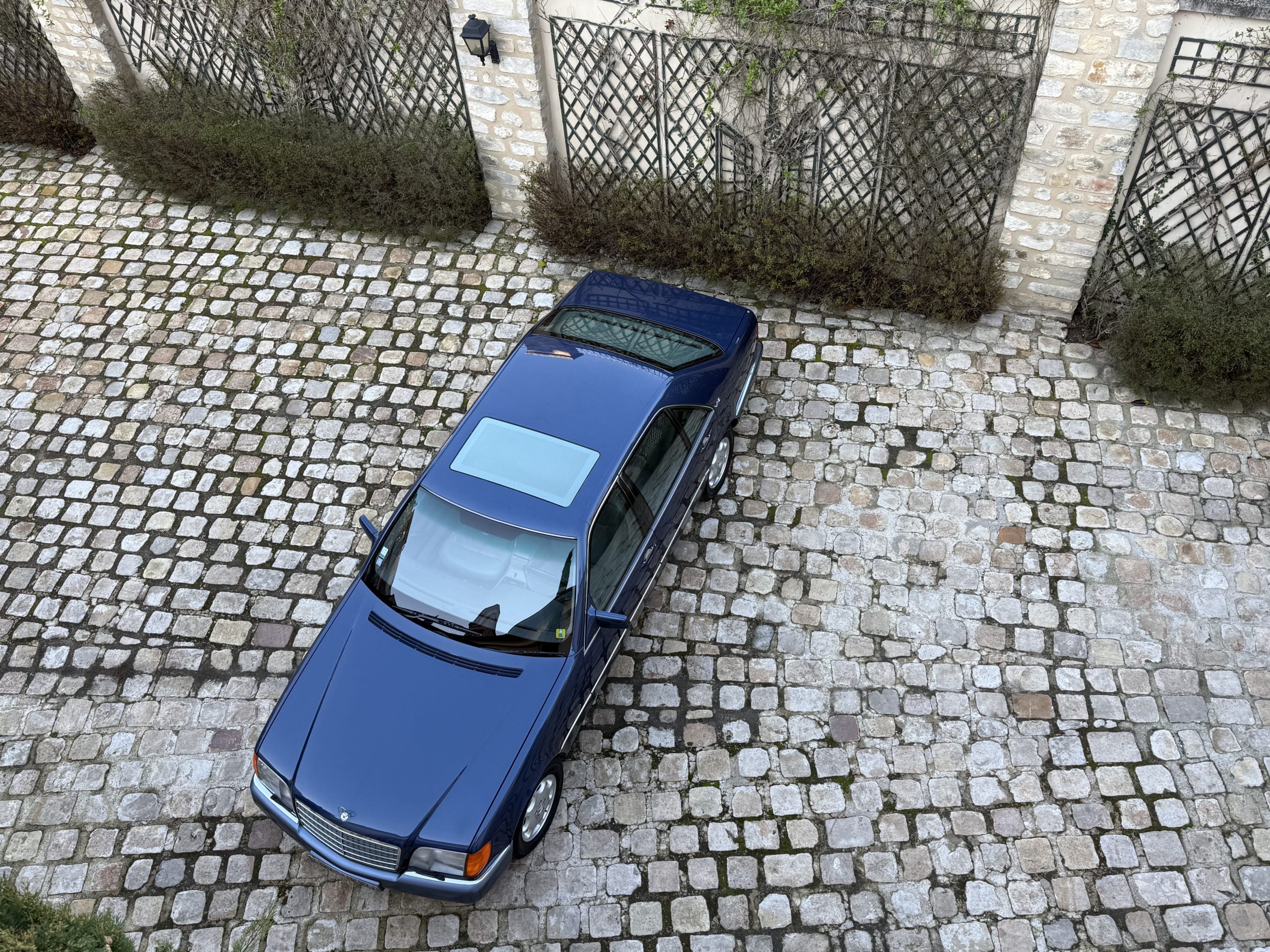 L’exemplaire présenté a été livré neuf à Paris le 13 décembre 1991. Il fait partie des toutes premières W140 600 SEL livrées en France. Cette limousine a été commandée par un homme d’affaires étranger frère d’un chef d’Etat, avec toutes les options du catalogue pour une valeur de 1 200 000 francs. Elle se distingue par un mariage original et élégant entre le ‘’bleu pacifique’’ de sa carrosserie et son intérieur en cuir gris. Restée dans la même famille, cette voiture, déjà unique par ses équipements et ses couleurs l’est encore davantage par son état quasi neuf et son très faible kilométrage de 22 000 kilomètres. Il serait superflu d’argumenter davantage. Il s’agit d’un exemplaire exceptionnel, rarissime, à l’histoire atypique qui trouvera sa place au sein d’une collection composée de pièces rares.