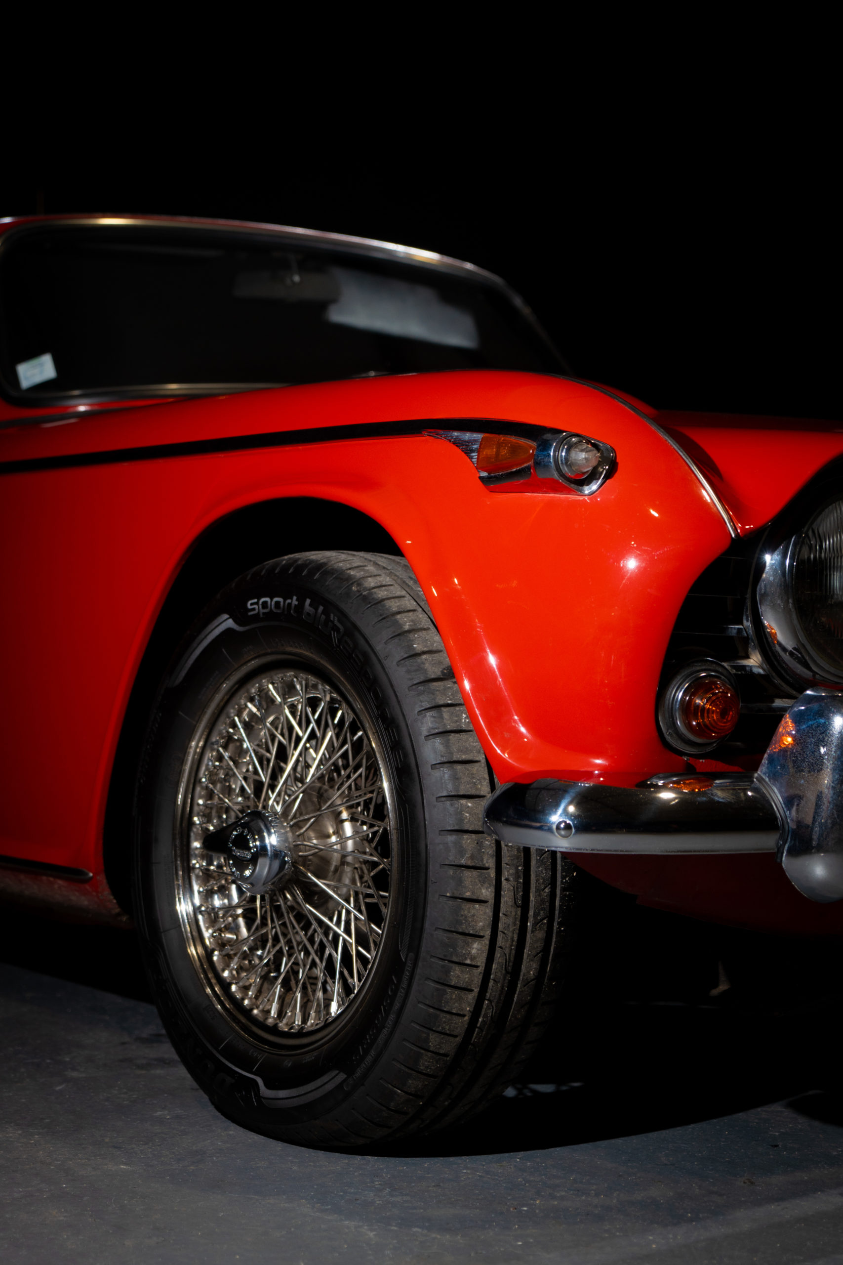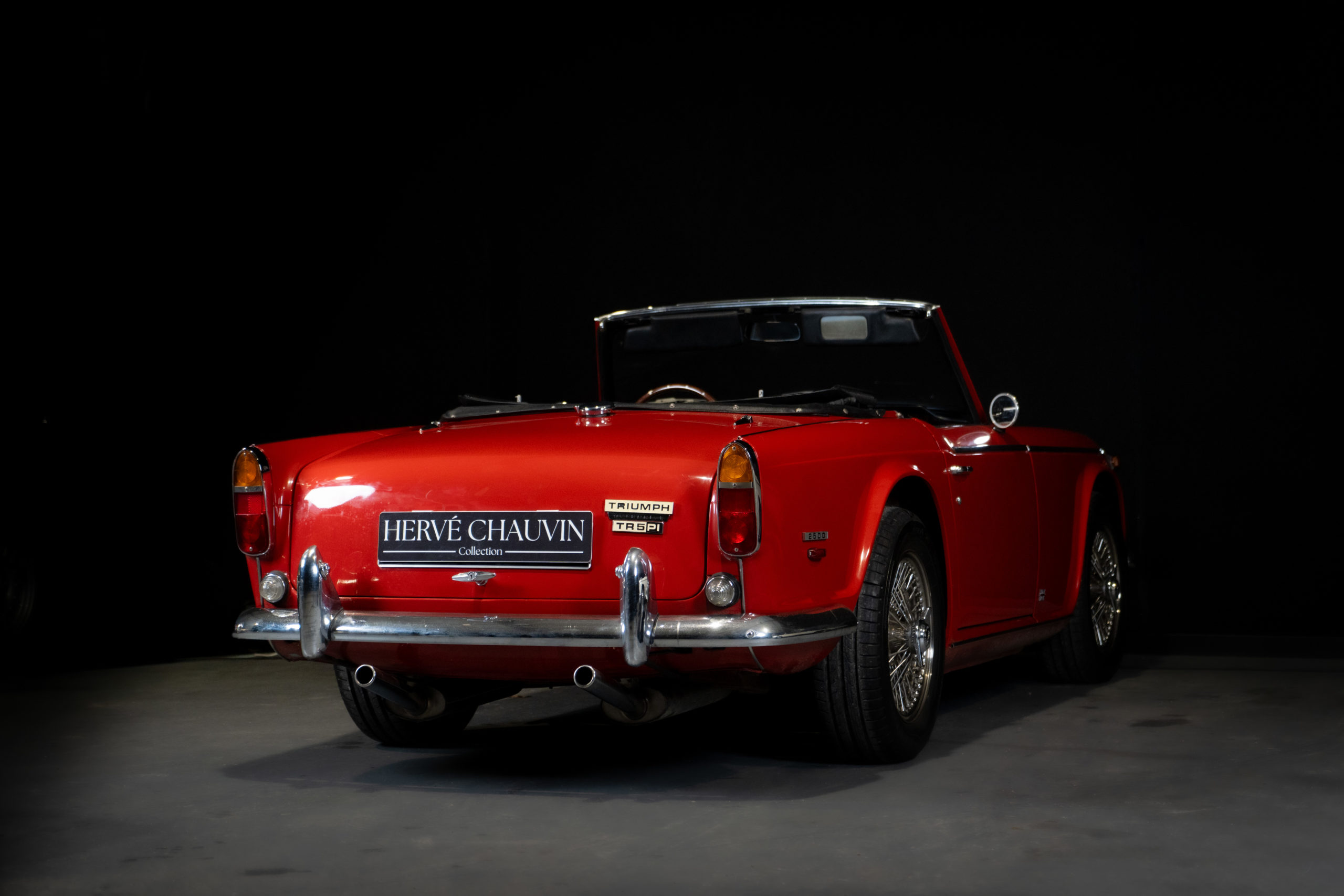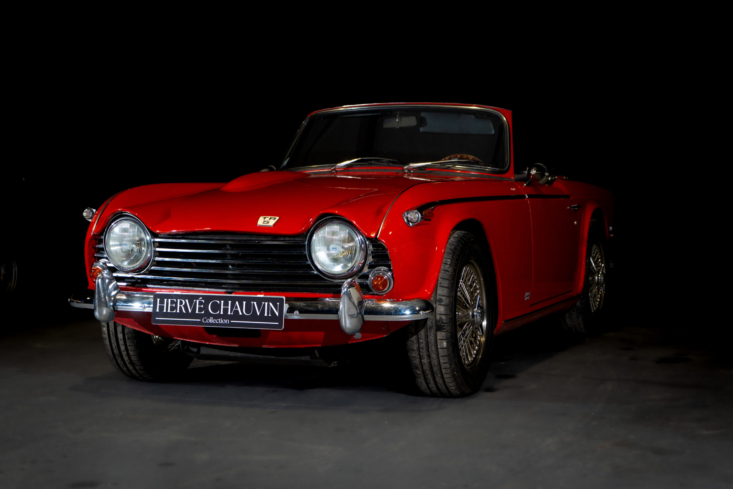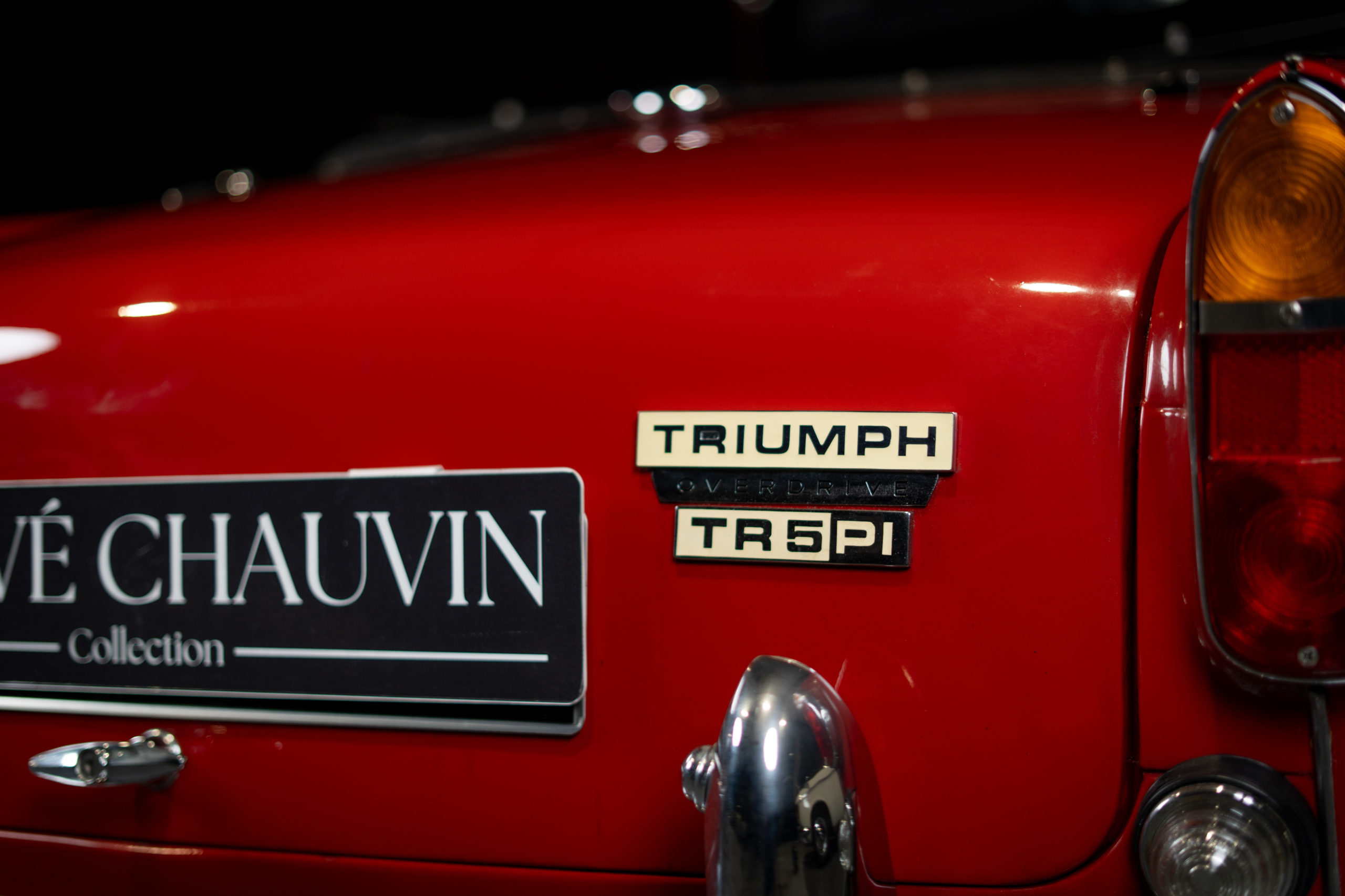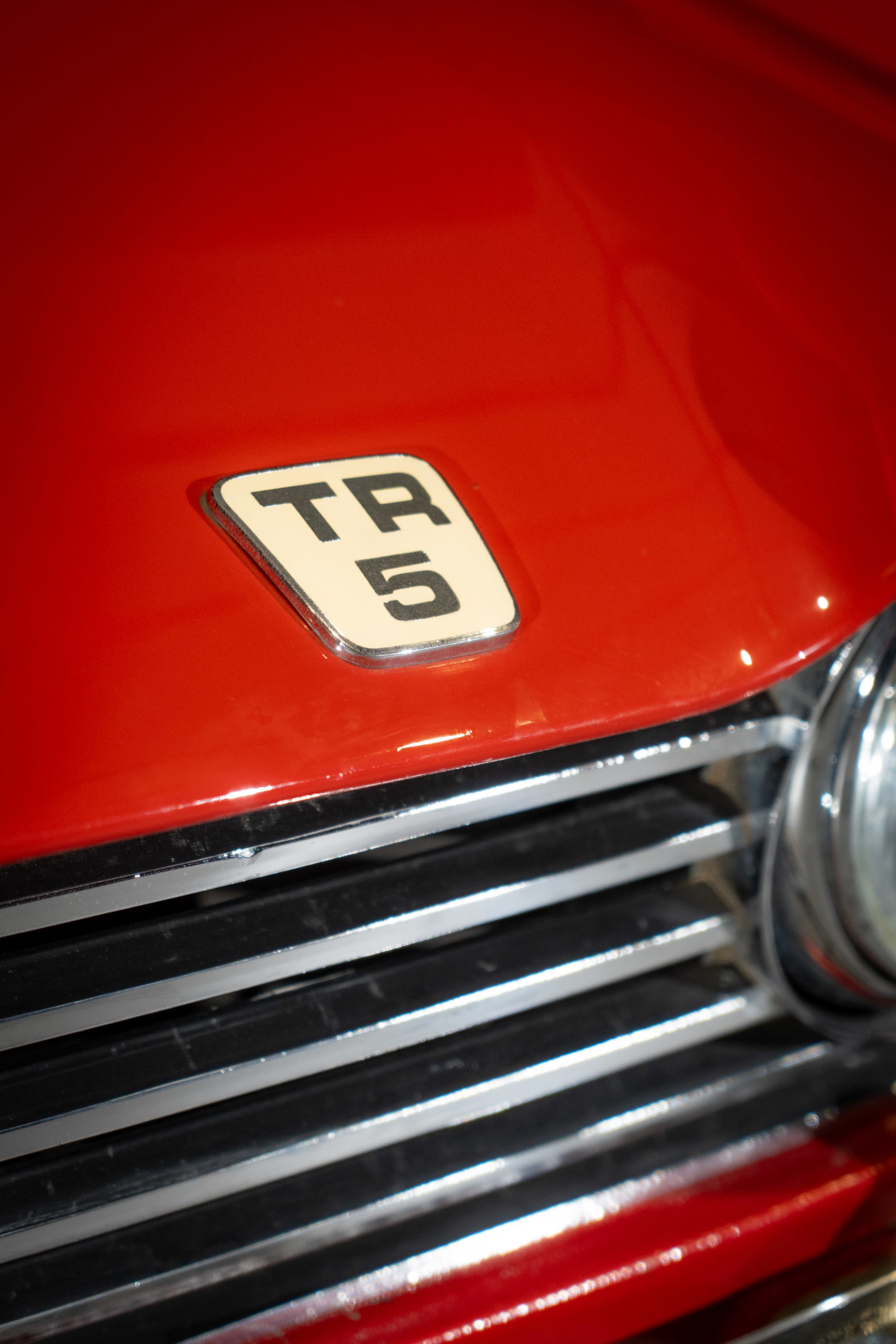 La Triumph TR5 , fabriquée seulement à moins de 3000 exemplaires durant 13 mois d’août 1967 à septembre 1968 est une des Triumph roadster les plus rares. Seule la motorisation six cylindres à injection de 150 ch la distingue de la TR4, ce qui la métamorphose et en fait une tout autre voiture. Ses performances et son agrément de conduite font d’elle une concurrente directe de l’Austin Healey 3000. A son bord, on retrouve les mêmes sensations et un bruit de mécanique envoutant rendant ce roadster ludique. Destiné pour le Etats-Unis, le modèle TR250 a été trois fois plus produit. Il est équipé de carburateurs répondant aux normes américaines abaissant sa puissance de 35 ch et réduisant son intérêt. Il est devenu rare de trouver une vraie TR5 en bon état.